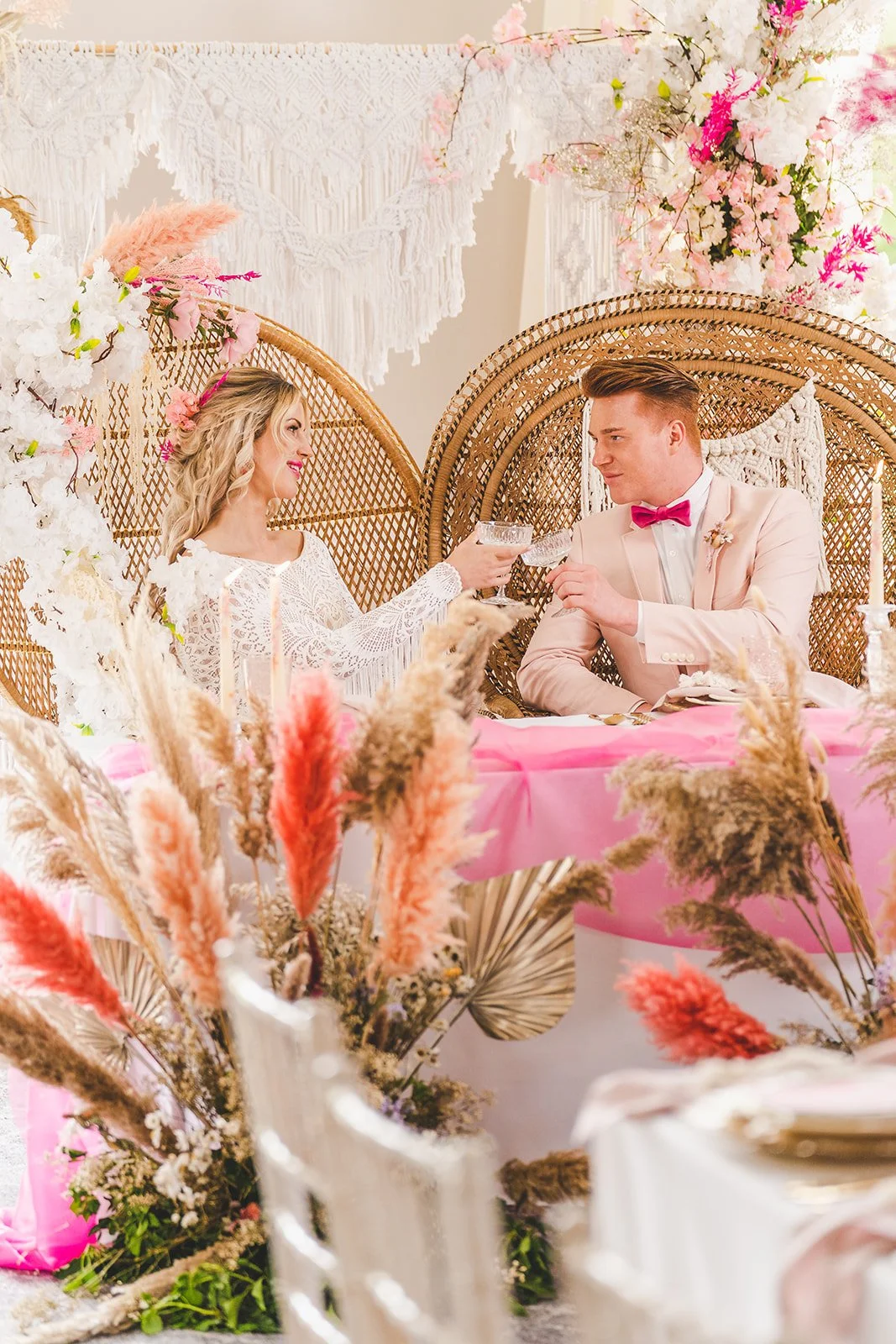 Add pampas grass, feathers, or dreamcatchers to the ceremony space for a boho touch.